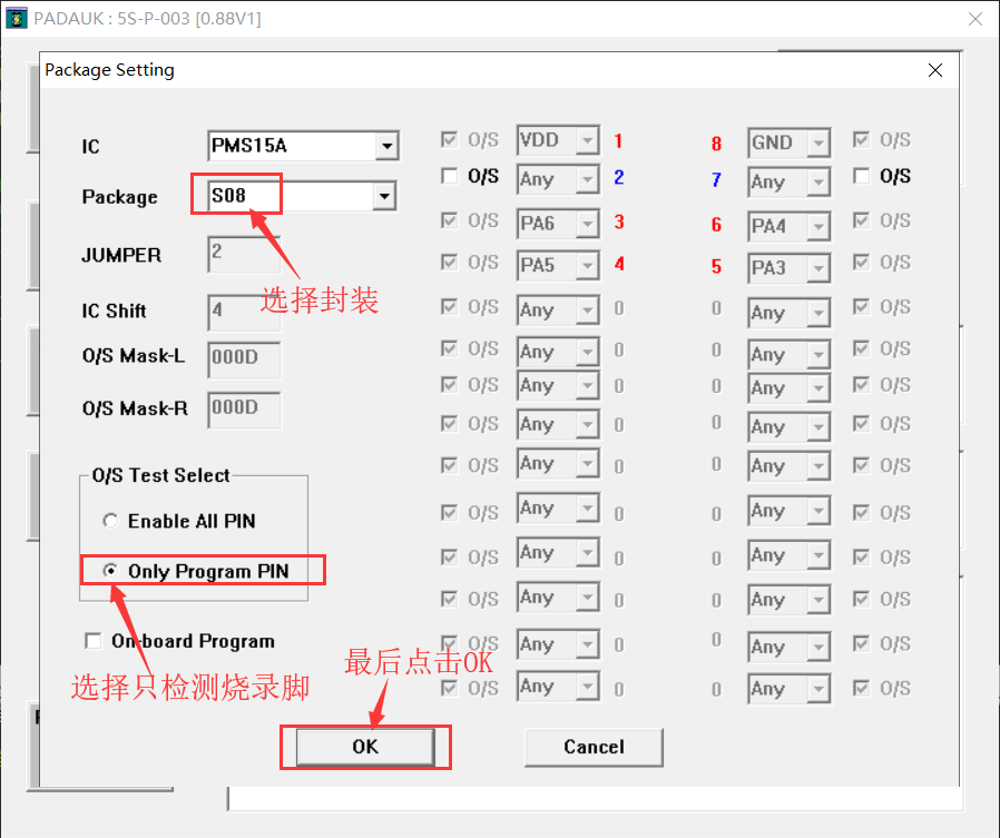 應廣燒錄器報錯OS test fail,選擇 only-program-PIN方法即可排除錯誤。